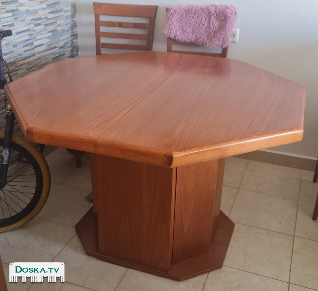 Восьмиугольный обеденный стол диаметром 120 см, изготовленный из дерева, раздвигается / раскладывается с помощью двух плат, хранящихся внутри ножки стола В отличном состоянии - 1,200 шекелей.