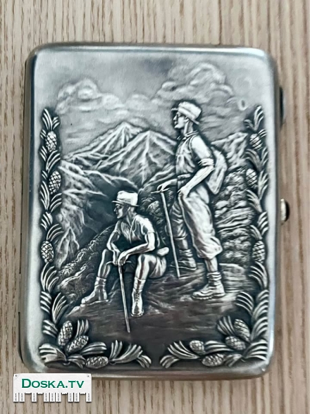 Настоящий серебряный сюжетный портсигар 1954 год Московский ювелир 875 проба в идеальном коллекционном состоянии размер 11Х9см изнутри позолота клейма присутствуют помещается пачка любых сигарет цена 2100 шек нахожусь в Петах-тикве все вопросы по телефону
